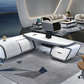 لوکس سفید L شکل مدیر چرم طرح ثبت اختراع جدید سبک مد مدرن ام دی اف نقاشی براق ال ای دی مدیر عامل اجرایی میز اداری 1