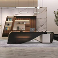 میز مدیریت اجرایی L شکل لوکس با کابینت جانبی قابل افزایش، ساخته شده از میز اداری مدرن ام دی اف E1 با کیفیت بالا.