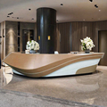 میز جلو پیشخوان لوکس وود فینیش فروشگاه خرده فروشی هتل پذیرایی اداری صندوقدار میز پذیرش جلوی بزرگ سفید1
