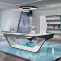 مبلمان مدرن لوکس L شکل سفید براق استودیو کار شارژ بی سیم هوشمند با فناوری پیشرفته مدیر عامل رئیس میز اداری اجرایی 1