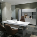 عمده فروشی مبلمان اداری خاکستری سفید مدرن میز کامپیوتر L شکل پریز برق Executive Desk1