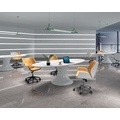 مبلمان اداری مدرن چرمی سفید شیشه مرمر رویه سفید U شکل میز و صندلی کافه چوبی میز کنفرانس بیضی شکل